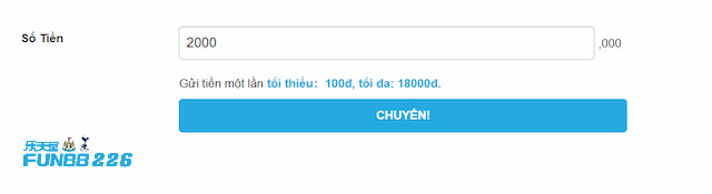 • Bước 2: Điền số tiền bạn muốn nạp vào nhà cái Fun88 rồi xác nhận thông tin. Tiếp đến nhấn nút “Chuyển tiền”.